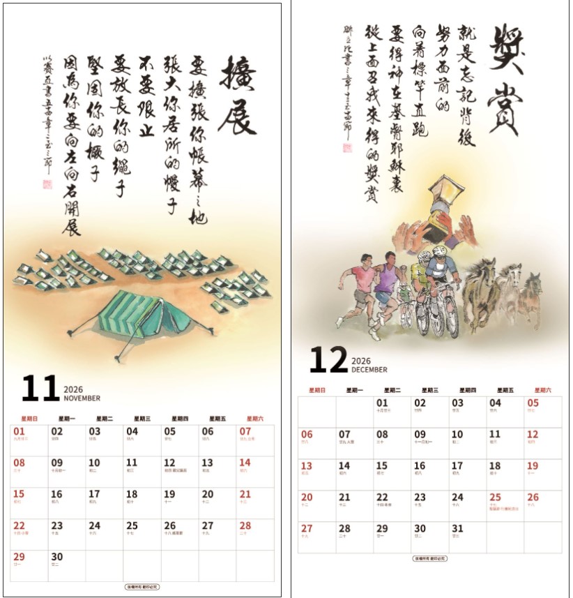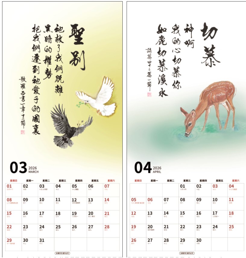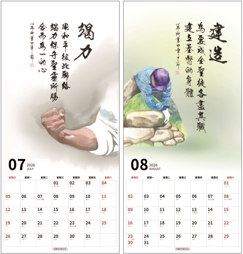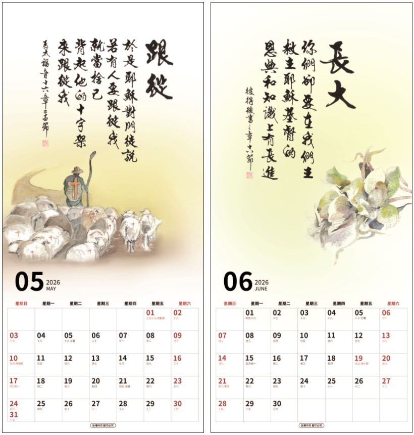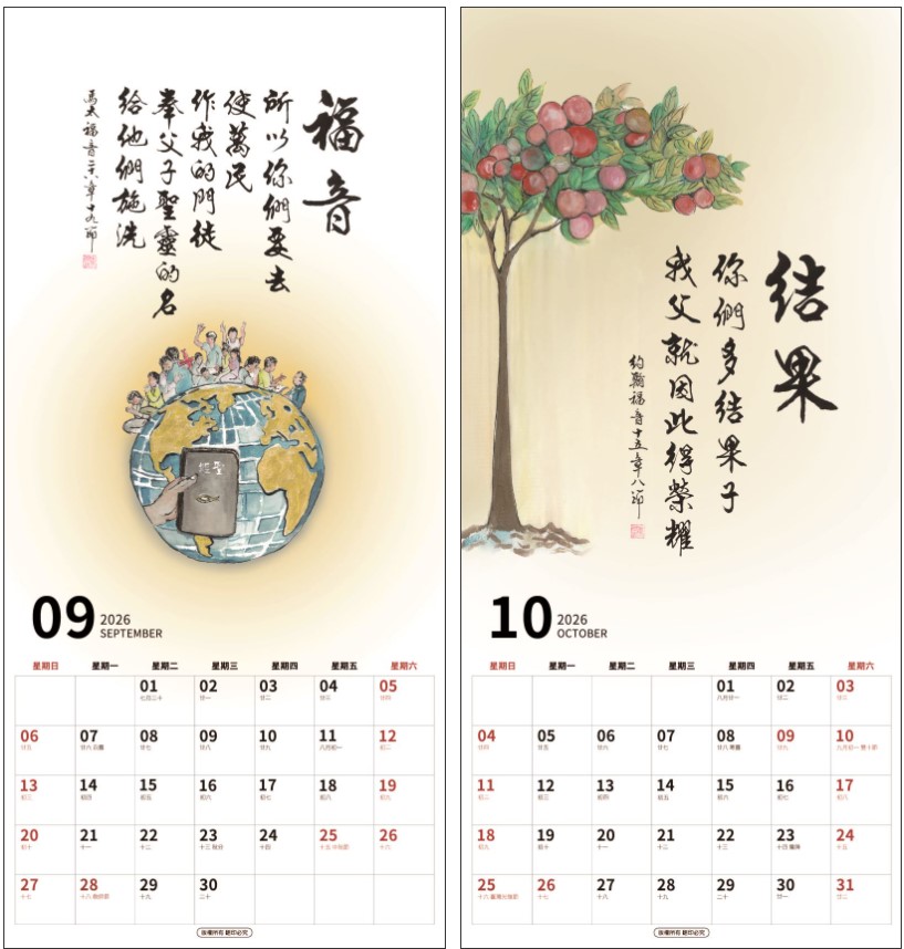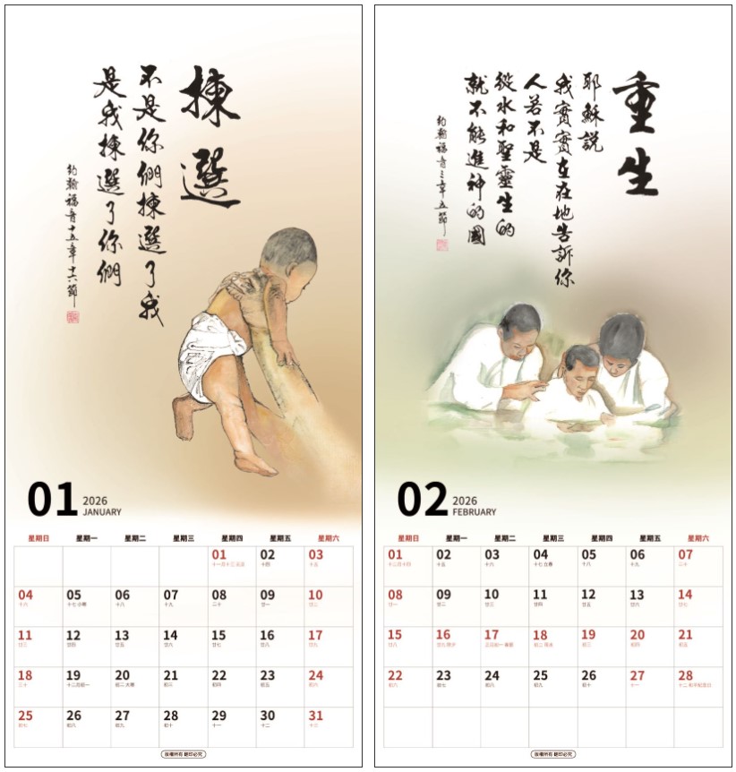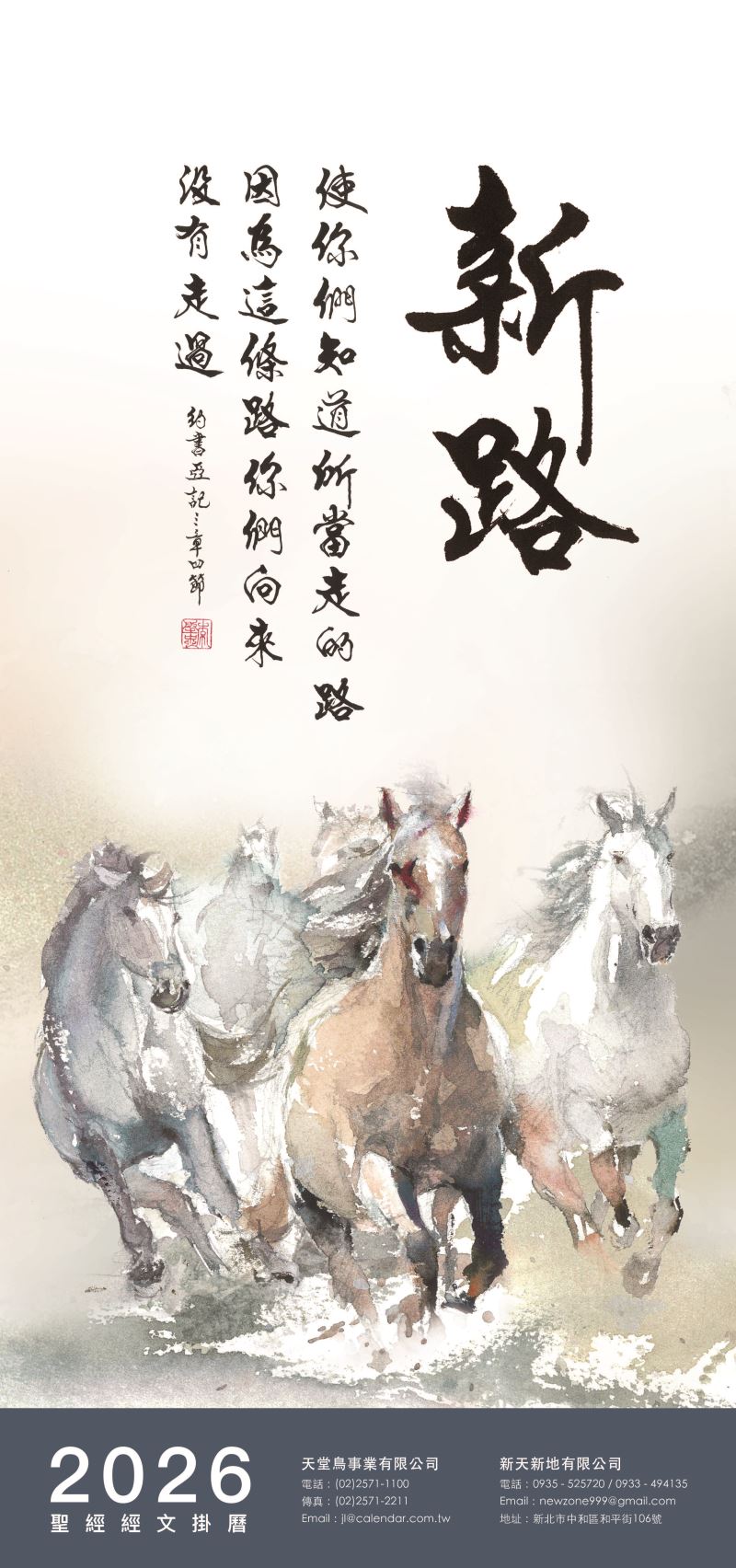 JL310 新路-3K教會版書法聖經經文福音月曆2026年